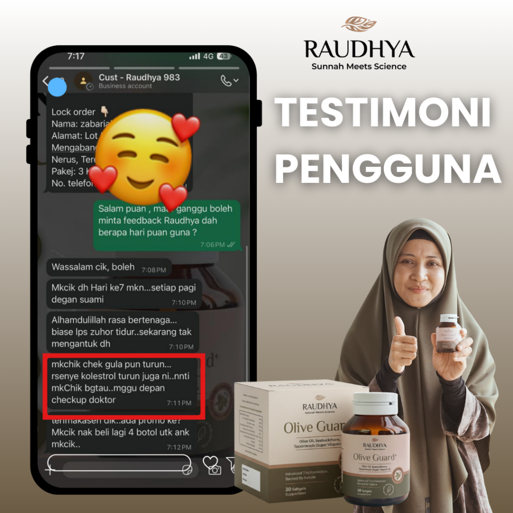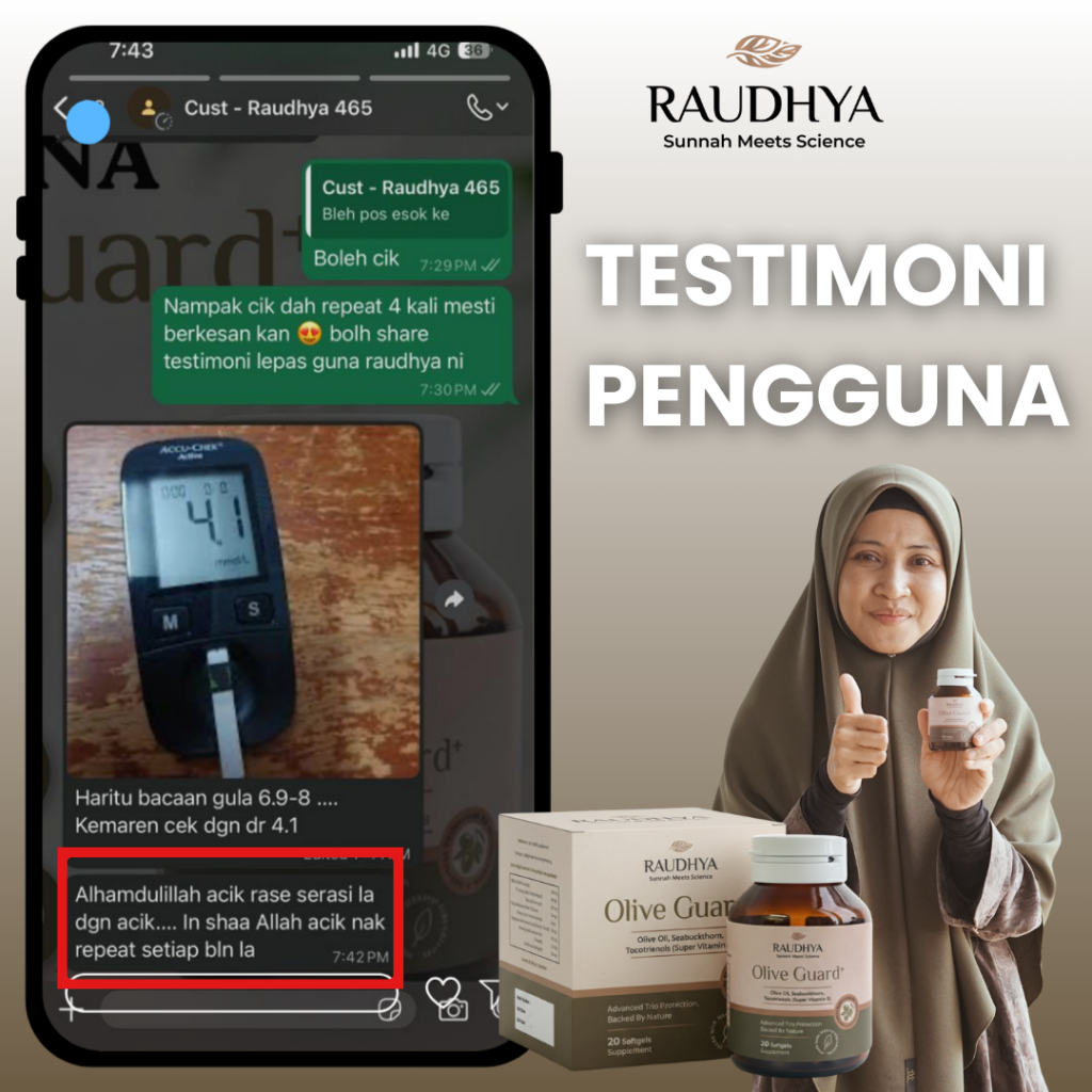 “Sebagai seorang pendakwah dan ibu, saya sangat menitikberatkan apa yang masuk ke dalam badan. Kesihatan satu amanah yang perlu dijaga. Saya pilih Raudhya® kerana ia berasaskan bahan sunnah yang diketahui kebaikannya serta disokong kajian klinikal. Mudah diamalkan, tanpa rasa hanyir, dan sesuai untuk seisi keluarga. Ini antara ikhtiar saya dalam menjaga kesihatan secara semula jadi.”